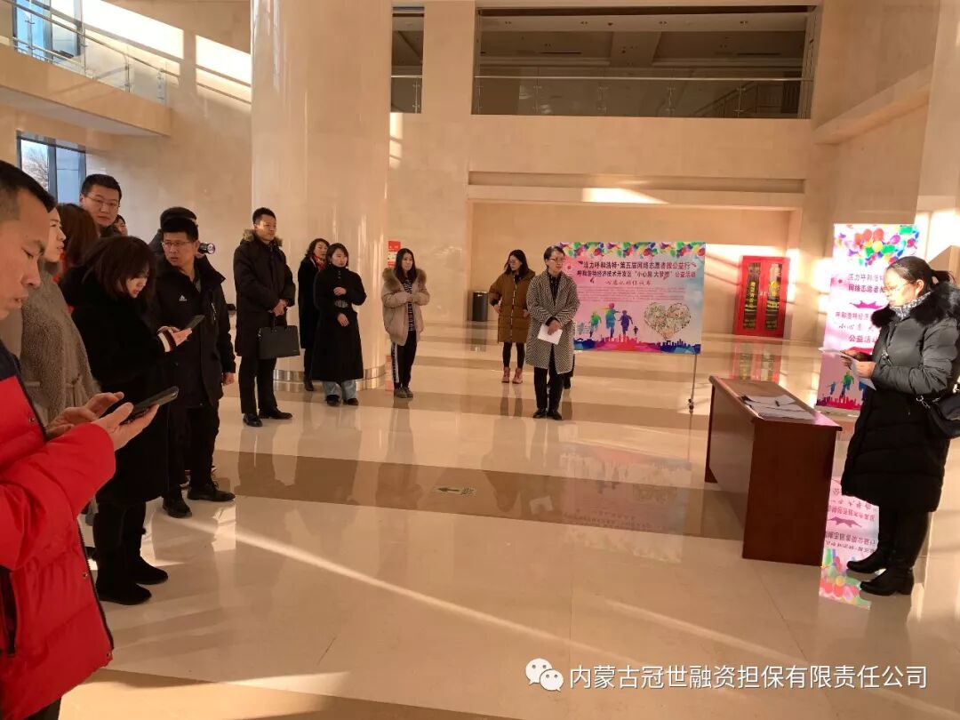 为弘扬社会主义核心价值观,推进网上公益工程,唱响网上主旋律,传播网络正能量,开发区网信办于2018年12月27日上午举办“小心愿,大梦想”网络微心愿公益活动,帮助沙尔沁中学校55名家庭贫困少年儿童完成他们的微心愿,中共内蒙古冠世融资担保有限责任公司支部委员会参加本次传递正能量献爱心活动。